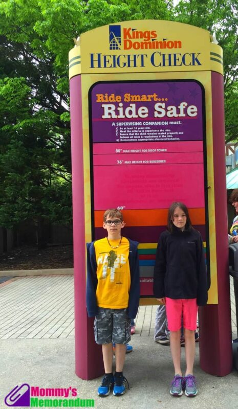 After all that eating, we headed to the height checker to make sure everyone could ride, or set the expectation. I loved this feature. While my children were each tall enough to ride all the rides, I was prepared to talk to them about not being disappointed should they have fallen short this time.