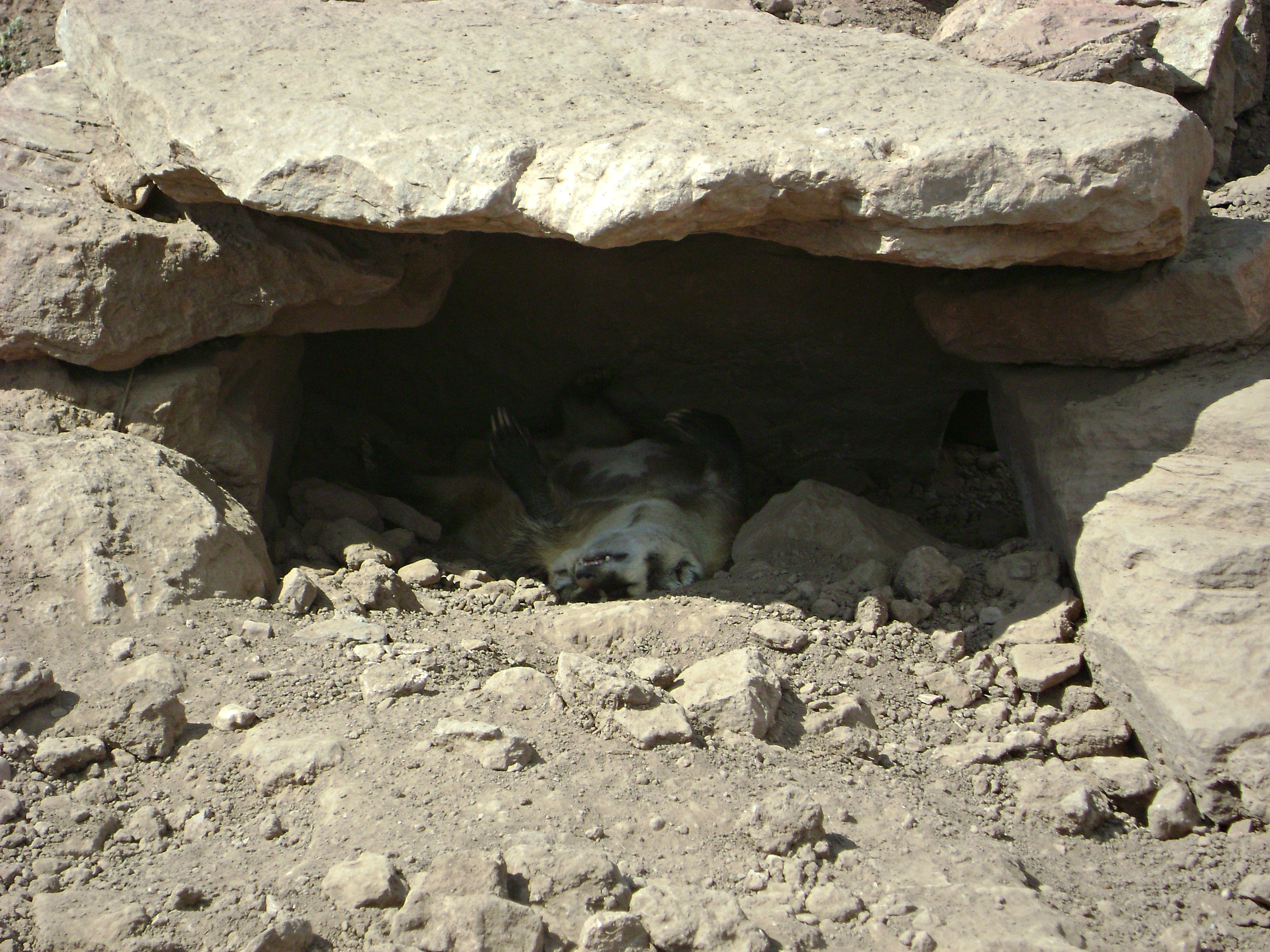 Someone suggested to the bear that he go “inside the cave where there’s shade”, only to discover as we drove a little further, the cave was occupied and not likely to be surrendered.
