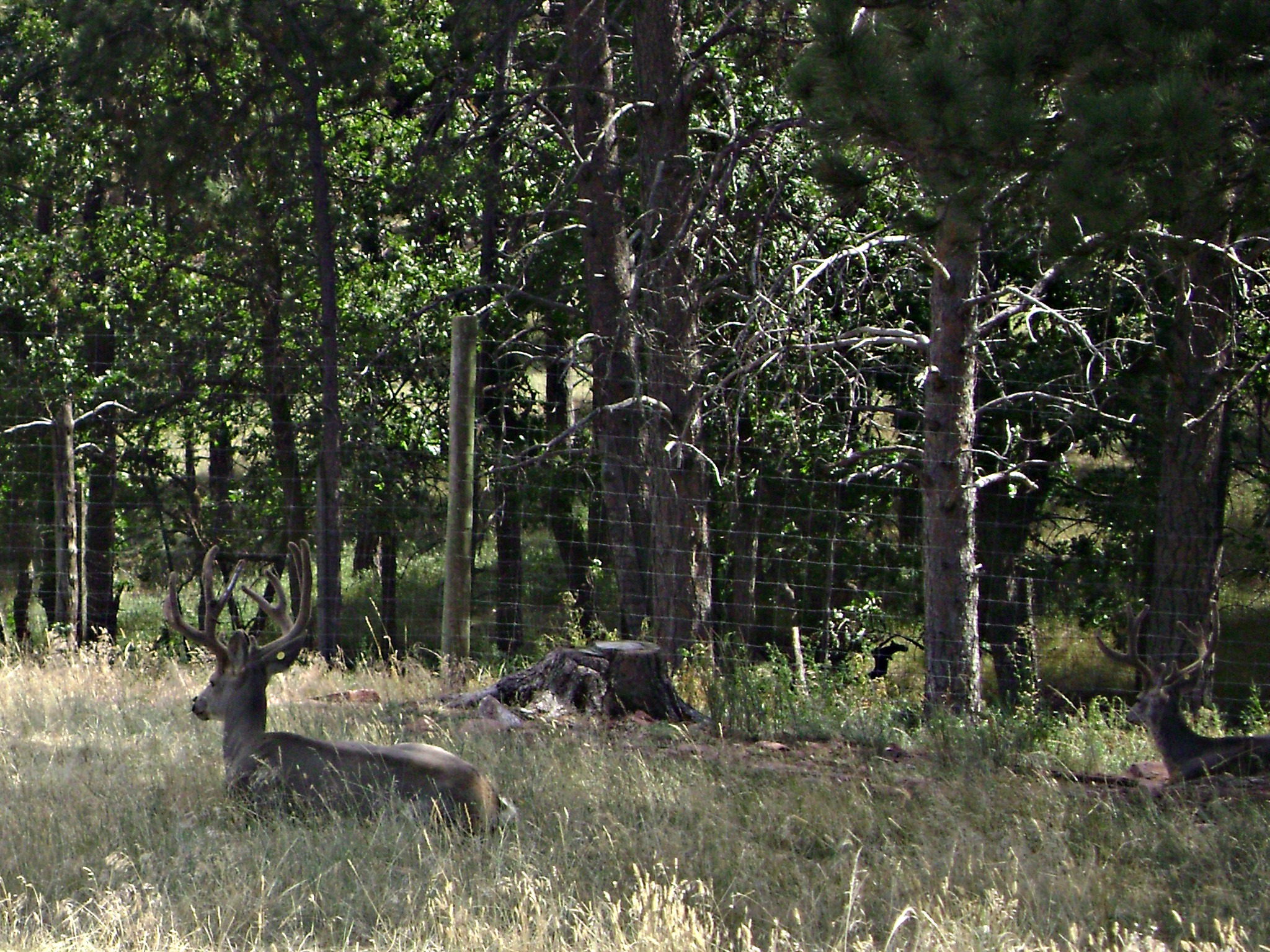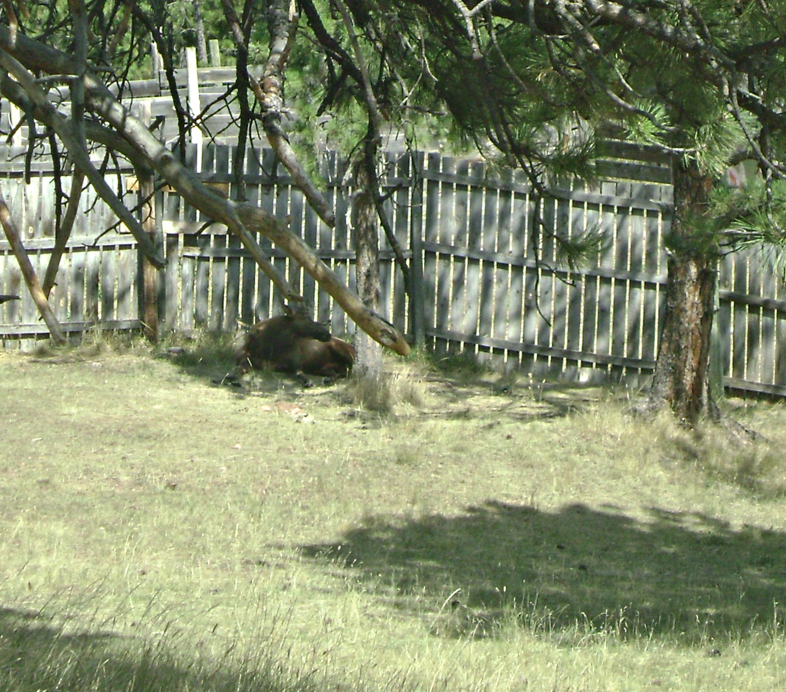 Then we followed the road around the bend and discovered the male elk resting against a fence.