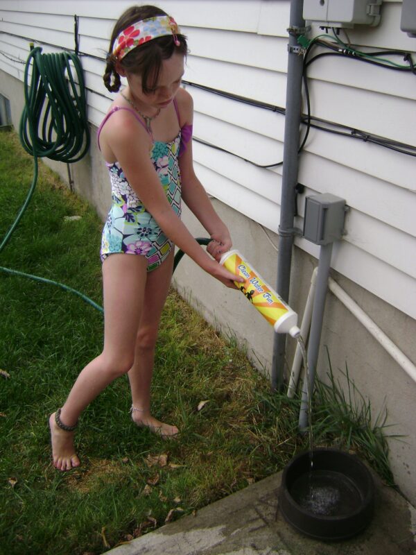 The kiddos are finding new ways to make everyday life easier and better for everyone. Our dog, Bailey Mae, loves to play outside with them. The kiddos job is to fill her bowl with water. They have filled a pitcher with filtered water and poured it into the bowl. This takes patience and time. Now, they get a drink and stretch the hose over to Bailey Mae’s bowl and the bowl has never been dry since Clean Water Fun: Garden Hose Filter.