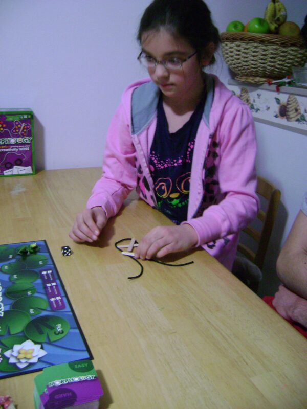 Once a week, sometimes more, we get together as a family and giggle our way through family game night. We play games from Dad and Mom’s childhood (Sorry, Monopoly, Clue, etc.), the kiddos have introduced us to some of their favorites and recently, a new game, Morphology, has become a favorite for EVERYONE!